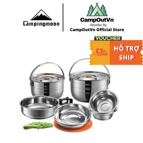 Với bộ nồi thép không rỉ của Campingmoon bạn có thể xử lý tất cả các món nấu, nướng, luộc, chiên, hấp, xào và có luôn chén đựng thức ăn và chén để ăn cho 6 người. Sản phẩm được thiết kế phù hợp nấu nướng cho khoảng 4 đến 8 người nên bạn hãy thỏa sức nấu nướng ngoài trời với bộ nồi sang trọng và dễ dàng bảo quản này.
