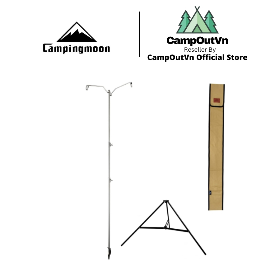 Giá treo đèn dã ngoại Campingmoon D-243 có 3 chân đế chắc chắc, có thể chịu tải đèn tối đa 5kg/ bên treo đèn, thân đèn có thể kéo dài tối đa 2.4m và tối thiểu cao 1.15m. Sản phẩm được xếp gọn trong túi vải canvas và tiện dùng cắm trại dã ngoại hoặc trang trí trong vườn, trong nhà.