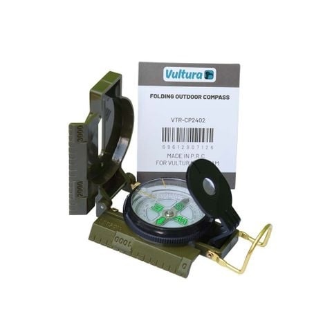 La bàn xếp bỏ túi phong cách quân dụng Vultura VTR-CP2402 - Một vật dụng rất hữu ích khi đi rừng, đi thám hiểm giúp xác định phương hướng. La bàn phong cách quân dụng có kiểu dáng ngầu, nhẹ, dễ dàng mang theo để sử dụng ngay lập tức khi cần.